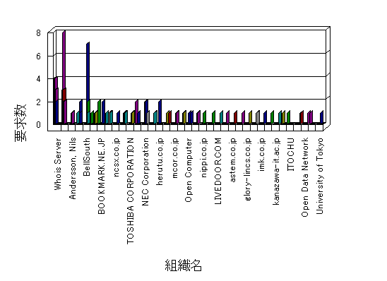 組織ユーザーにインターネット接続を提供する、商用または非営利団体、学術・行政機関などの、インターネット ドメイン で識別される団体や組織です。Microsoft Site Server Analysis は同じ組織に登録されたすべてのドメインを 1 つの組織としてグループ化します。ドメインがデータベースで使用できない場合は、1 つのインターネット ドメインが 1 つの組織を識別するのに使用されます。