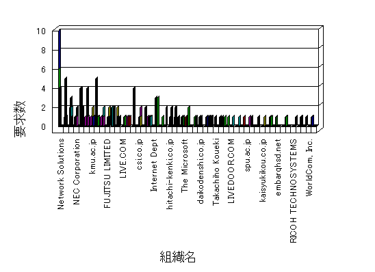 組織ユーザーにインターネット接続を提供する、商用または非営利団体、学術・行政機関などの、インターネット ドメイン で識別される団体や組織です。Microsoft Site Server Analysis は同じ組織に登録されたすべてのドメインを 1 つの組織としてグループ化します。ドメインがデータベースで使用できない場合は、1 つのインターネット ドメインが 1 つの組織を識別するのに使用されます。