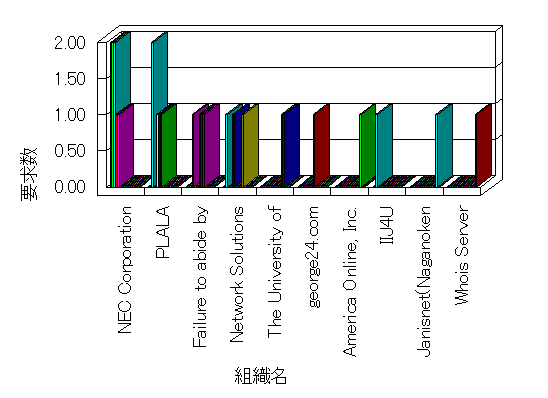 組織ユーザーにインターネット接続を提供する、商用または非営利団体、学術・行政機関などの、インターネット ドメイン で識別される団体や組織です。Microsoft Site Server Analysis は同じ組織に登録されたすべてのドメインを 1 つの組織としてグループ化します。ドメインがデータベースで使用できない場合は、1 つのインターネット ドメインが 1 つの組織を識別するのに使用されます。
