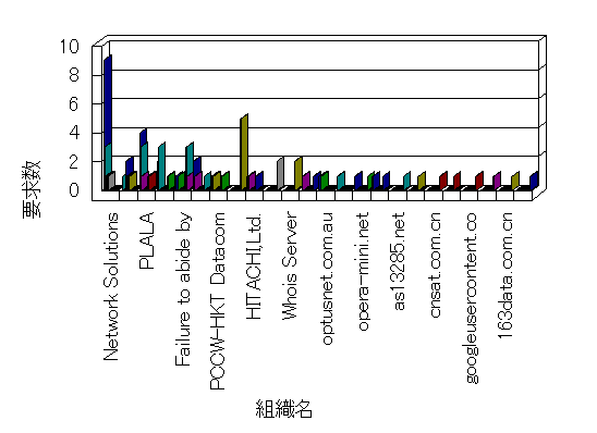 組織ユーザーにインターネット接続を提供する、商用または非営利団体、学術・行政機関などの、インターネット ドメイン で識別される団体や組織です。Microsoft Site Server Analysis は同じ組織に登録されたすべてのドメインを 1 つの組織としてグループ化します。ドメインがデータベースで使用できない場合は、1 つのインターネット ドメインが 1 つの組織を識別するのに使用されます。