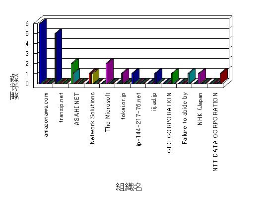 参照組織のサイトには、このサイトにリンクするページがあります。グラフでは、このサイトへのアクセス数に基づいた、上位 10 組織を示します。